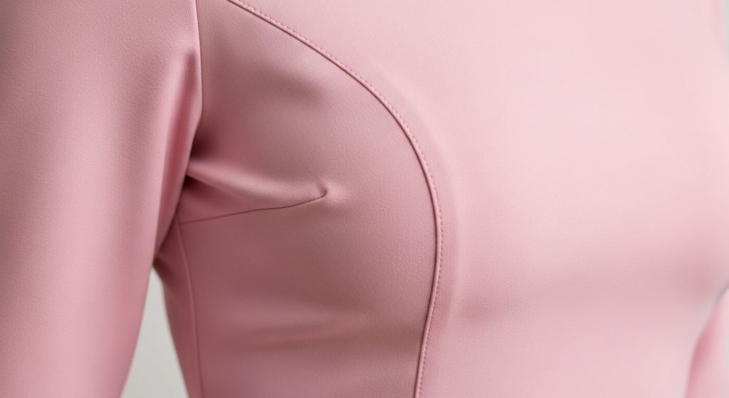 - Dolman or raglan sleeves: These avoid shoulder seams that emphasize width and create a natural drape instead.