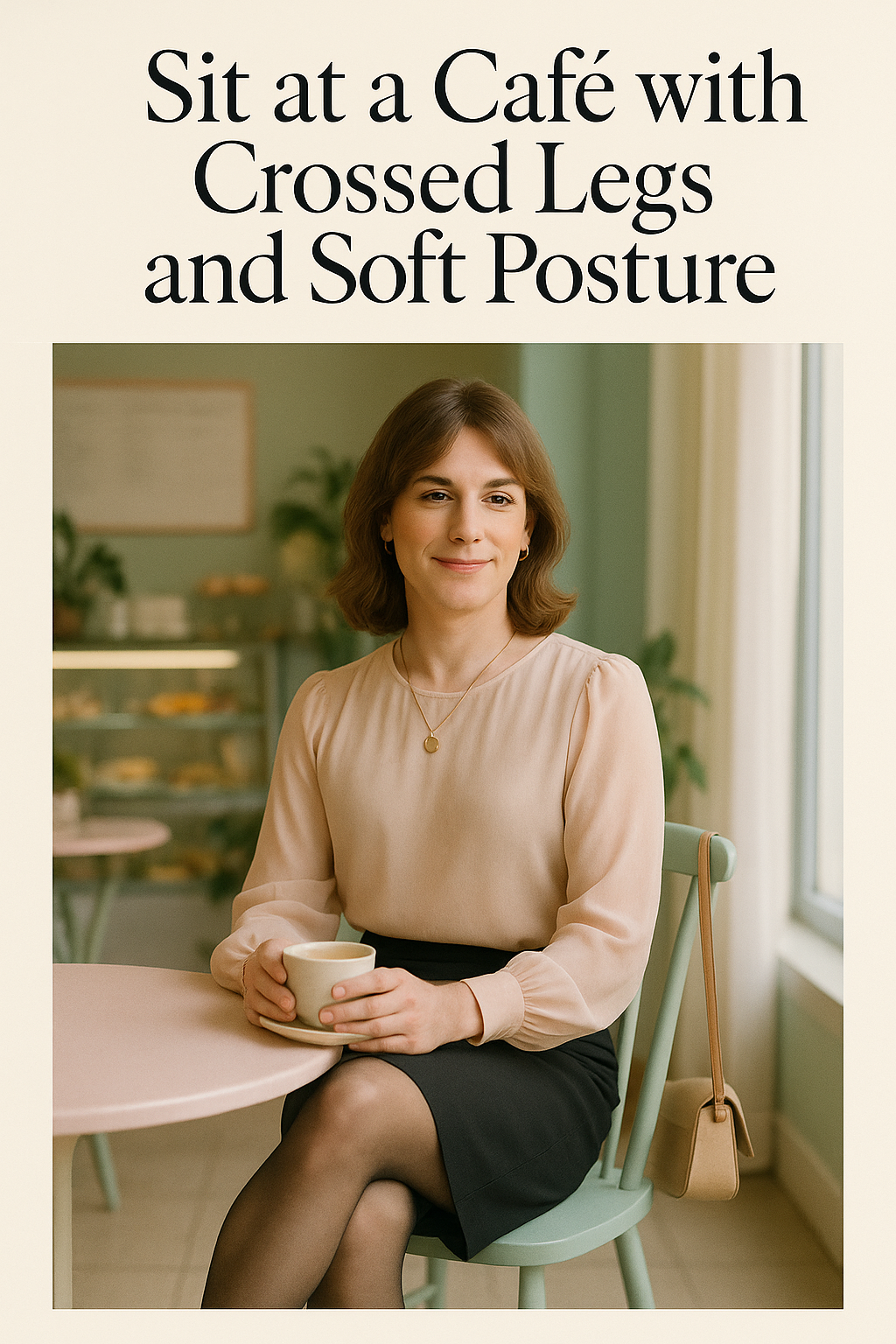 Sit at a Café with Crossed Legs and Soft Posture