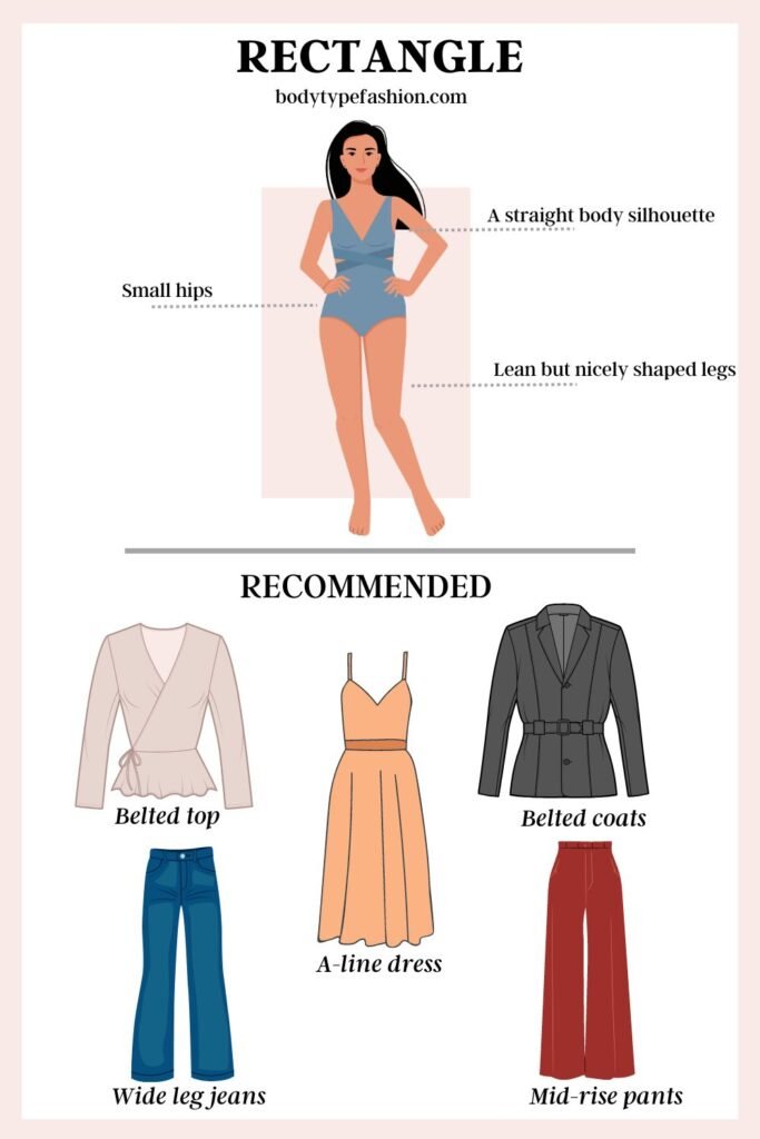 If you’re a rectangle shape, your body has a similar width throughout the shoulders, waist, and hips. The aim here is to create the illusion of curves.