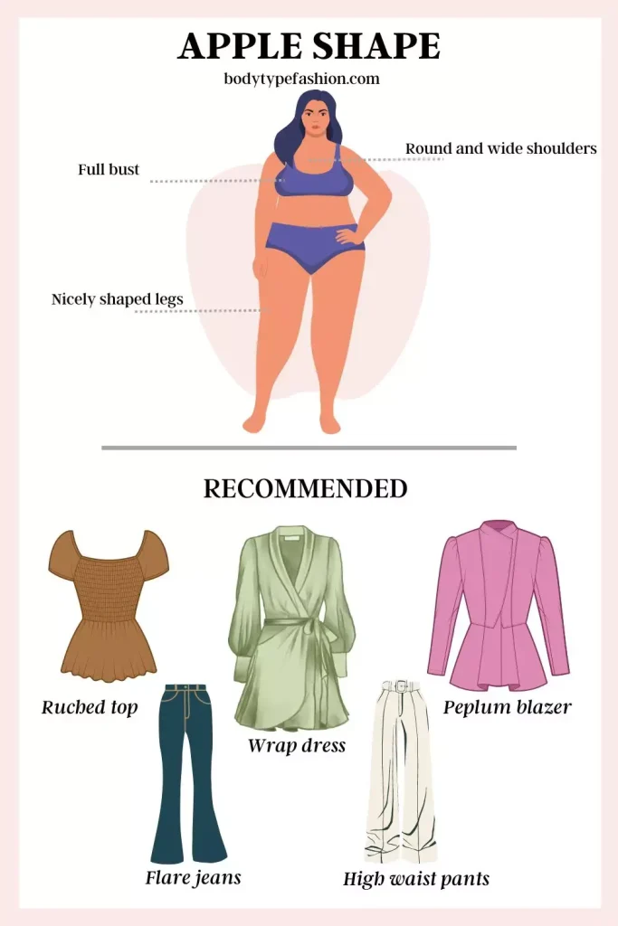 If you have an apple body shape, you might notice that your weight tends to gather around your midsection. Your shoulders are often wider, and your legs and arms are usually slimmer. Think of celebrities like Jennifer Hudson and Kate Winslet! Embracing your apple shape means understanding how to enhance your beautiful features while creating a balanced look.